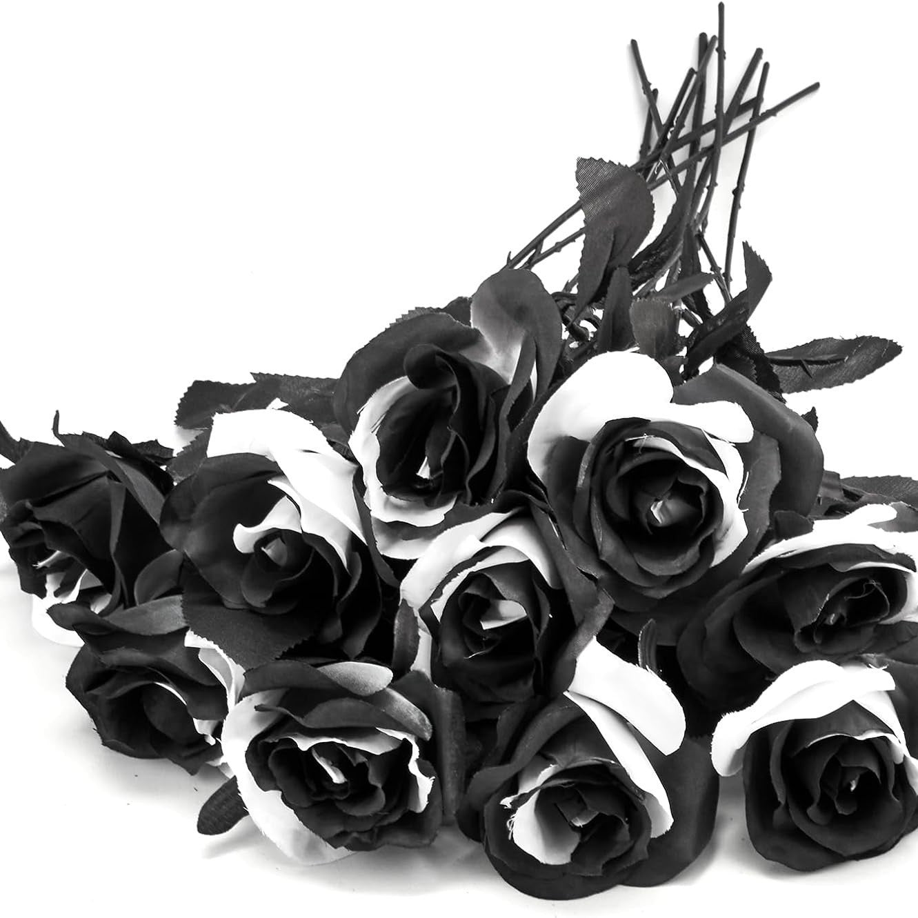 Bulk 10Pcs Black And White Roses 2025 Real Touch Silk Flowers Bridal Bouquet for Gothic Wedding Decor Hotel Arrangements Wholesale