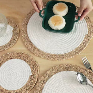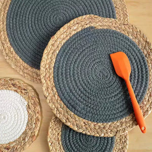 11.8 - Inch Natural Calabash Grass Woven and Cotton Rope Coaster Set