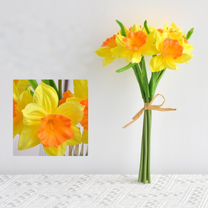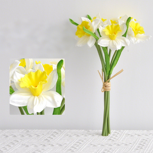 This 11.8-inch artificial daffodil is a perfect blend of natural aesthetics and pragmatism, meticulously replicated from real daffodils. The petals are made of high-transparency eco-friendly material, showcasing a dewy luster as if touched by morning dew. The delicate gradient of goose yellow is so fine that it seems to capture the trace of sunlight ing through. The stem mimics the fibrous texture of real plants, with a naturally curved arc that looks unforced. Accompanied by dark green artificial leaves with clear vein patterns, it’s almost indistinguishable from real ones at a glance.