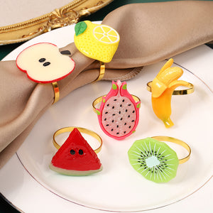 12-Pack Fake Fruit Napkin Rings (Lemon, Banana & More) – Table Setting Decor for Dinners & Parties