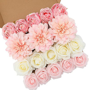 24 Pcs Silk Rose Bouquet Combo Dahlia & Roses Bouquet Kit with Adjustable Stems Hyper-Realistic Floral Arrangements for Wedding Arches Bridal DIY Baby Shower Centerpieces & Moody Home Decor UV Fade Resistant Wholesale