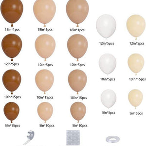 135-Piece Double-Layer Latex Balloon Garland Kit – Blush Coffee Brown & Chocolate Metallic Neutral Party Decor