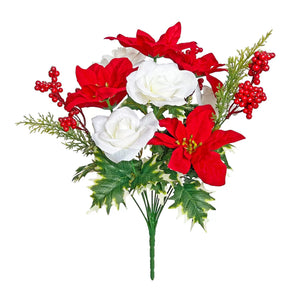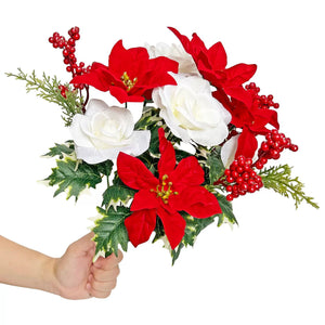 16.9 Inches 12-Heads Christmas Artificial Flowers - Poinsettia, Velvet White Roses & Pine Needles | Festive Holiday Decor for Home, Mantel, Tabletop & Xmas Tree