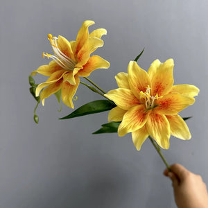 2 - Head Double - Petal Mini Lily Artificial Flowers, Realistic Table Centerpiece