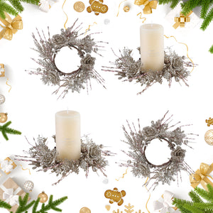 2-Pack Christmas Candle Ring Wreaths - Gold Glitter Artificial Flower Decor for Holiday Tree & Table