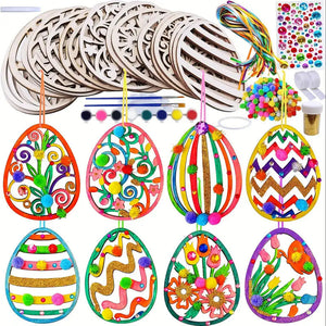2-Pack DIY Easter Egg Kids Craft Kit - Wooden Painting Set with All-In-One Decor Supplies