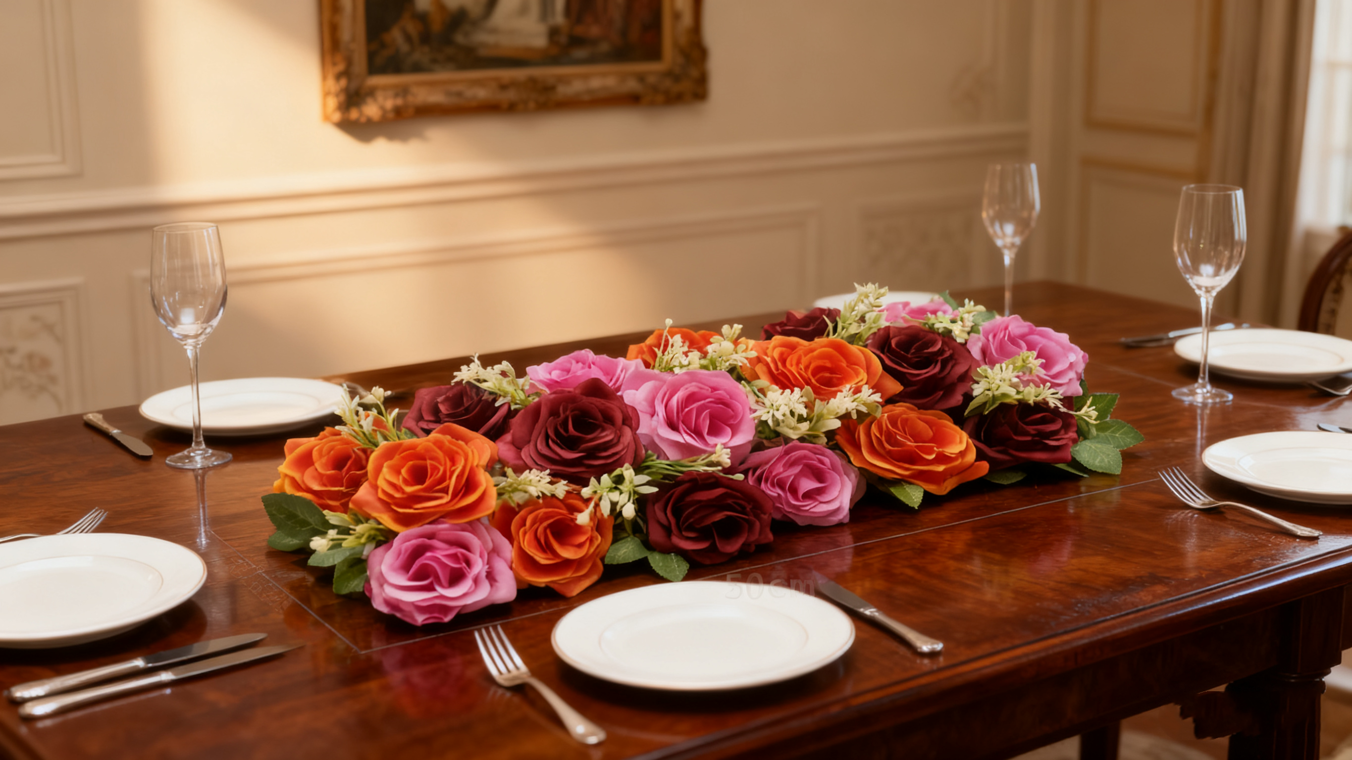 Transform Your Dining Table with This Vibrant Faux Rose Flower Row!