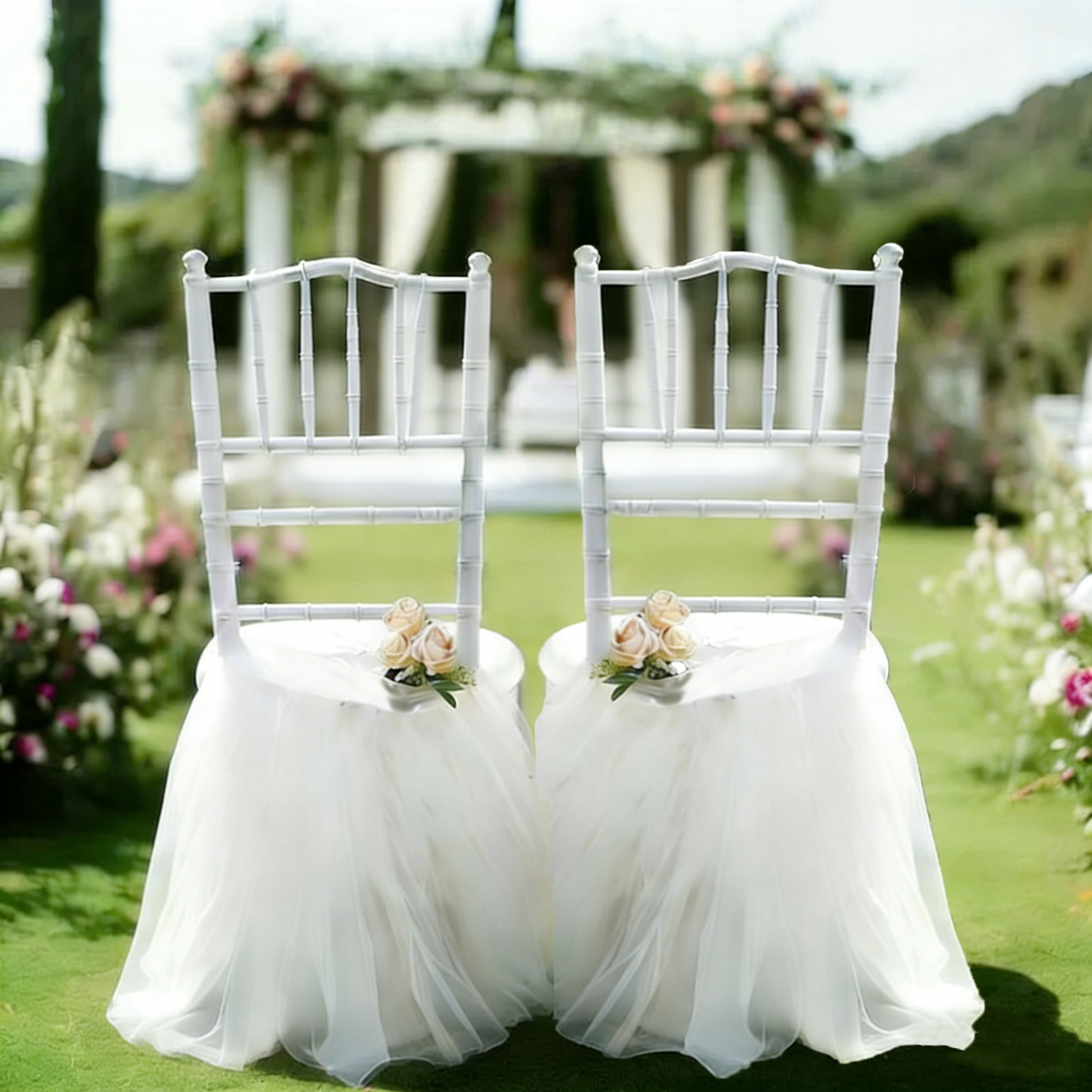20-Pack Bridal Shower Chair Tutu Skirts - White Tulle Chair Decor for Wedding/Party
