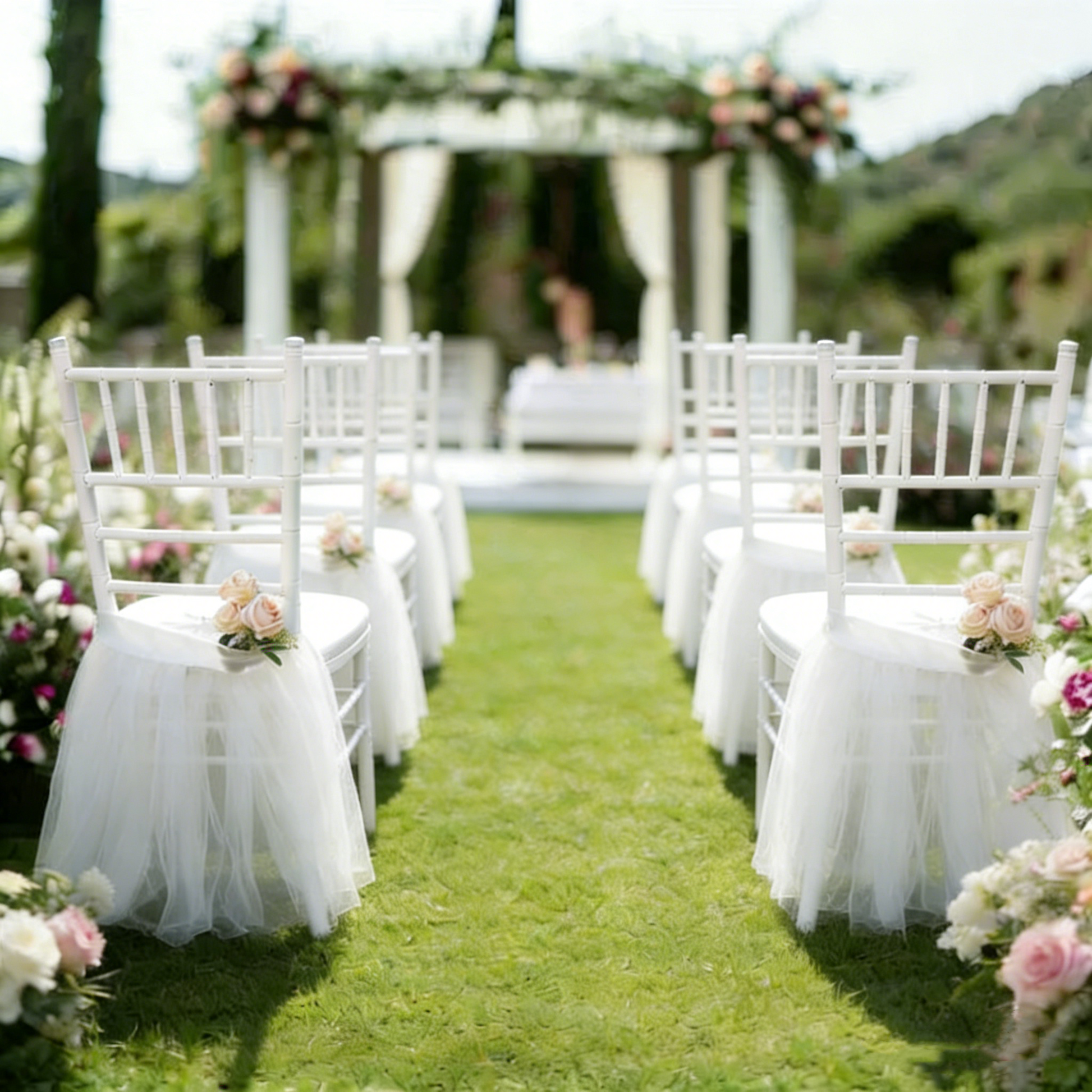 Tired of boring chair backs at your bridal shower? This 20-pack of white tulle chair tutus is the "fairy dust" your setup needs—enough to deck out every seat (no one gets left out of the magic!).