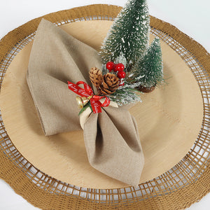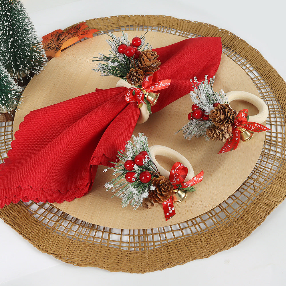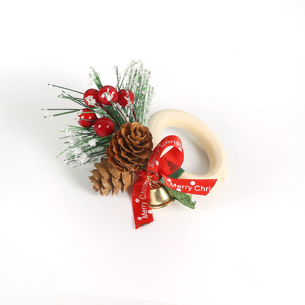 24 - Pack Christmas Wooden Napkin Rings with Pine Cones, Red Berries, Bows & Bells