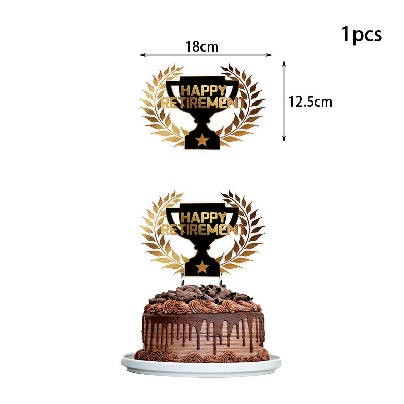 • Toppers: 1 large retirement cake topper (the MVP of the dessert table) + 12 small decor toppers (perfect for cupcakes or scattering on tables for extra flair)