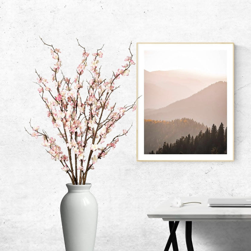 🌸 Material: Handcrafted silk flowers with plastic stems for natural texture. Petals mimic real cherry blossoms with delicate curling edges.
