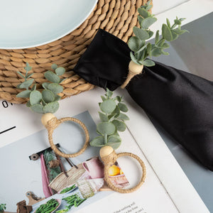 6 Pcs New Eucalyptus Leaf Napkin Rings Handmade Faux Greenery Napkin Holders for Hotels & Western Restaurants