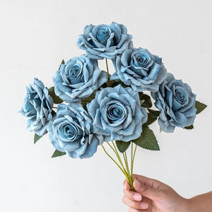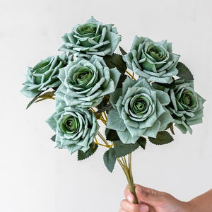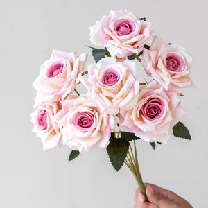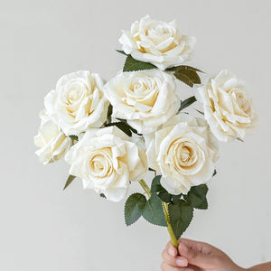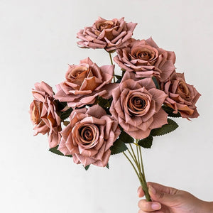 7 - Head Cappuccino Silk Rose Artificial Flower Bouquet - Wedding & Home Decor Fake Roses