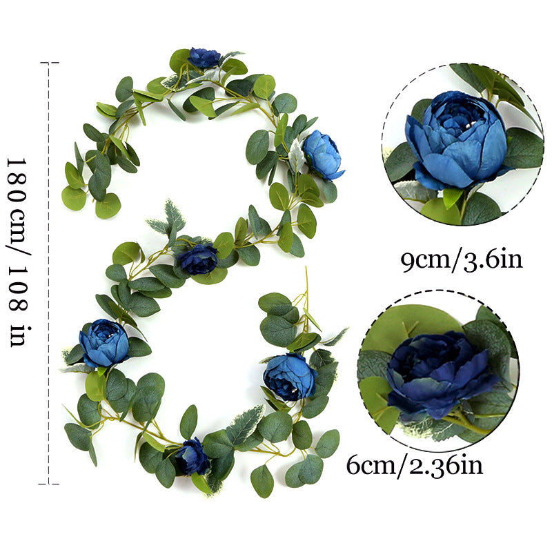 70.8" Wedding Decor Garland - Faux Eucalyptus & Blue Peony Vines for Wedding Decorations