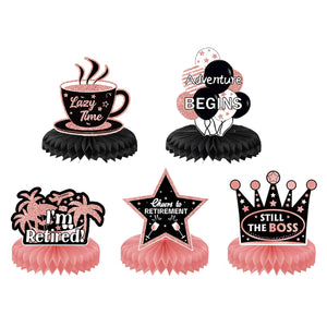 - 24pcs small table toppers (with sassy phrases like “Still the Boss” — chef’s kiss for retirees)