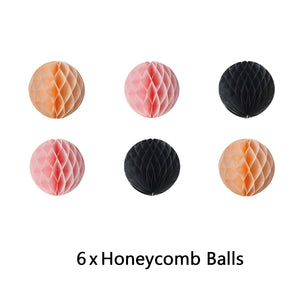 - 6pcs 8-inch honeycomb balls (matches the pom-poms for extra texture)