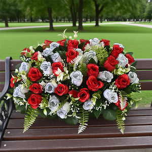 Artificial Cemetery Flower Arrangement - 36 Red & White Matte Roses Grave Decoration