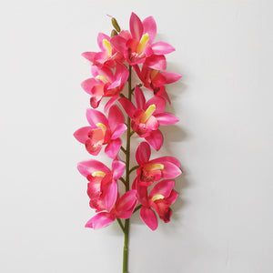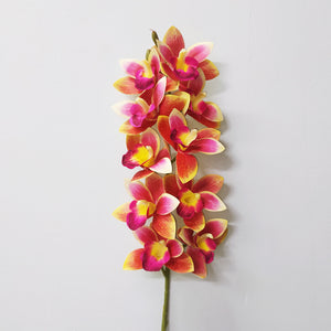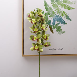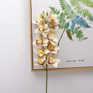 Artificial Cymbidium Orchid - 1 Stem with 10 Blooms, East Asian Style Fake Flower for Floor Decoration