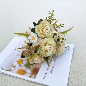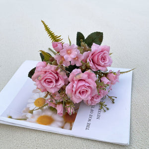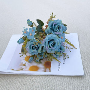 Artificial Rose & Hibiscus Mini Bouquets - Low-Maintenance Home Decor Fake Flowers