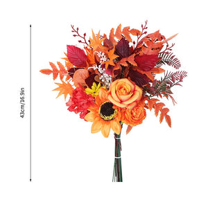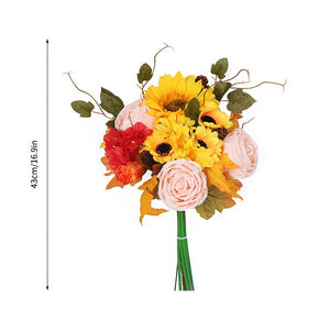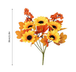 Artificial Sunflowers & Maple Leaves - Silk Flower Decor for Thanksgiving, Halloween, Christmas | Ready-to-Use Arrangements (16.9" & 11.8")
