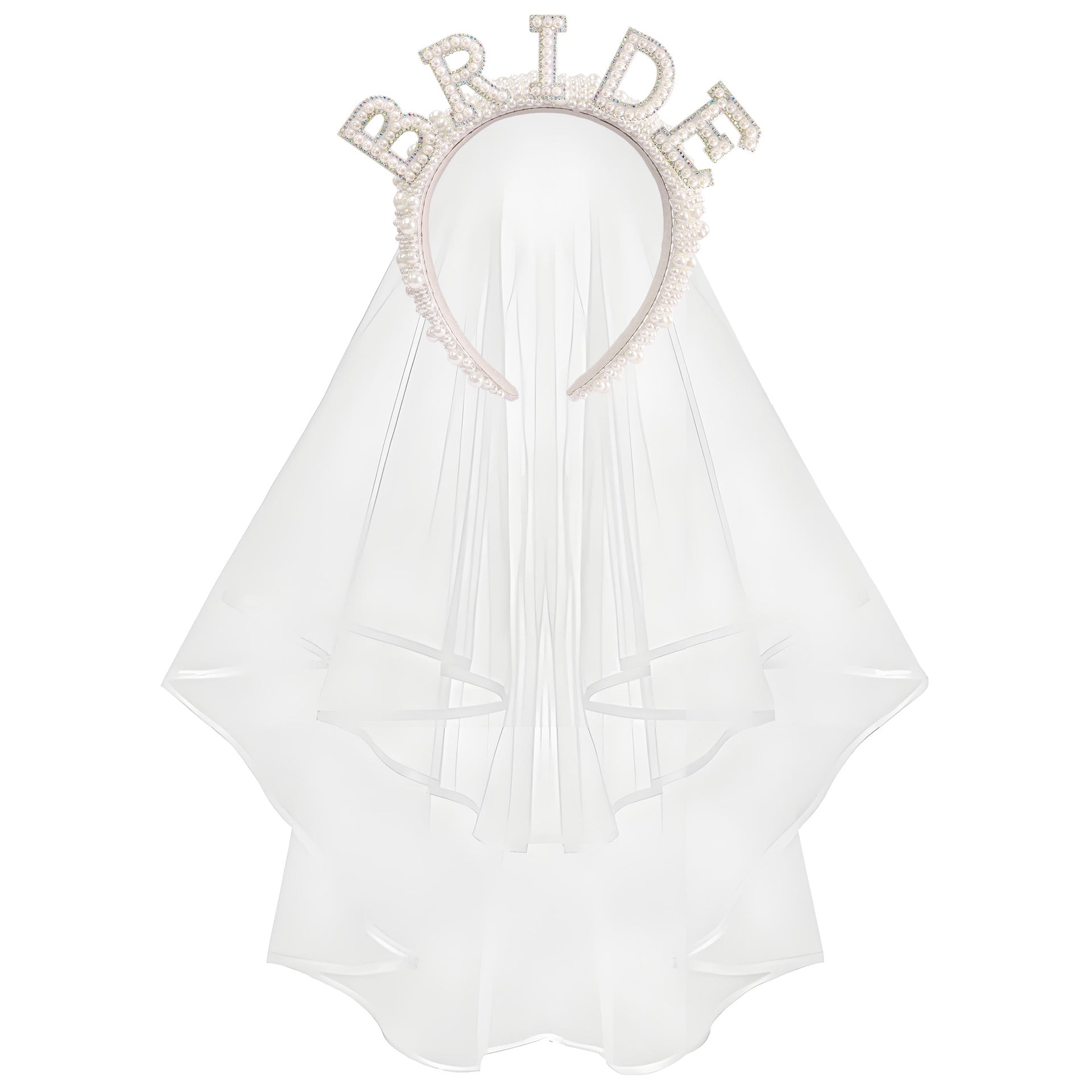 Bachelorette Party Bride Pearl Crystal Headband Veil Sash - Fashion Bridal Hair Accessory