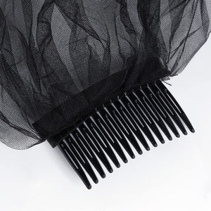 • Layer 1: 23.6" + 1.97" face-framing mantilla (adjustable blusher)