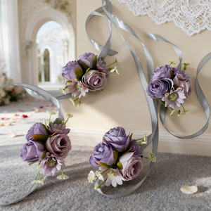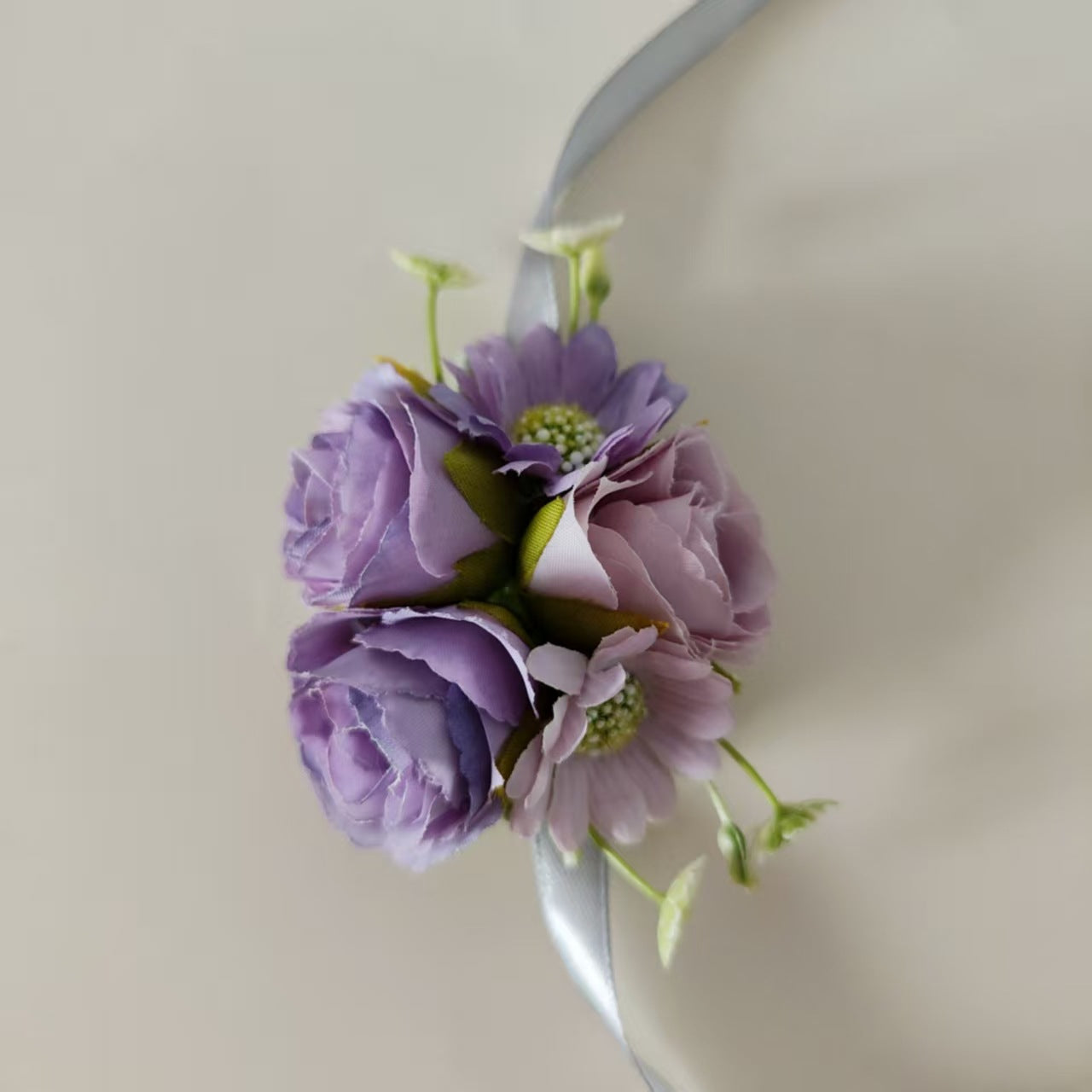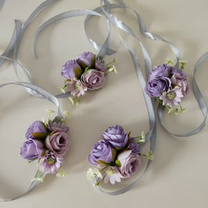 Bridal & Bridesmaid Light Purple Wrist Corsage - Artificial Rose Buds Satin & PVC