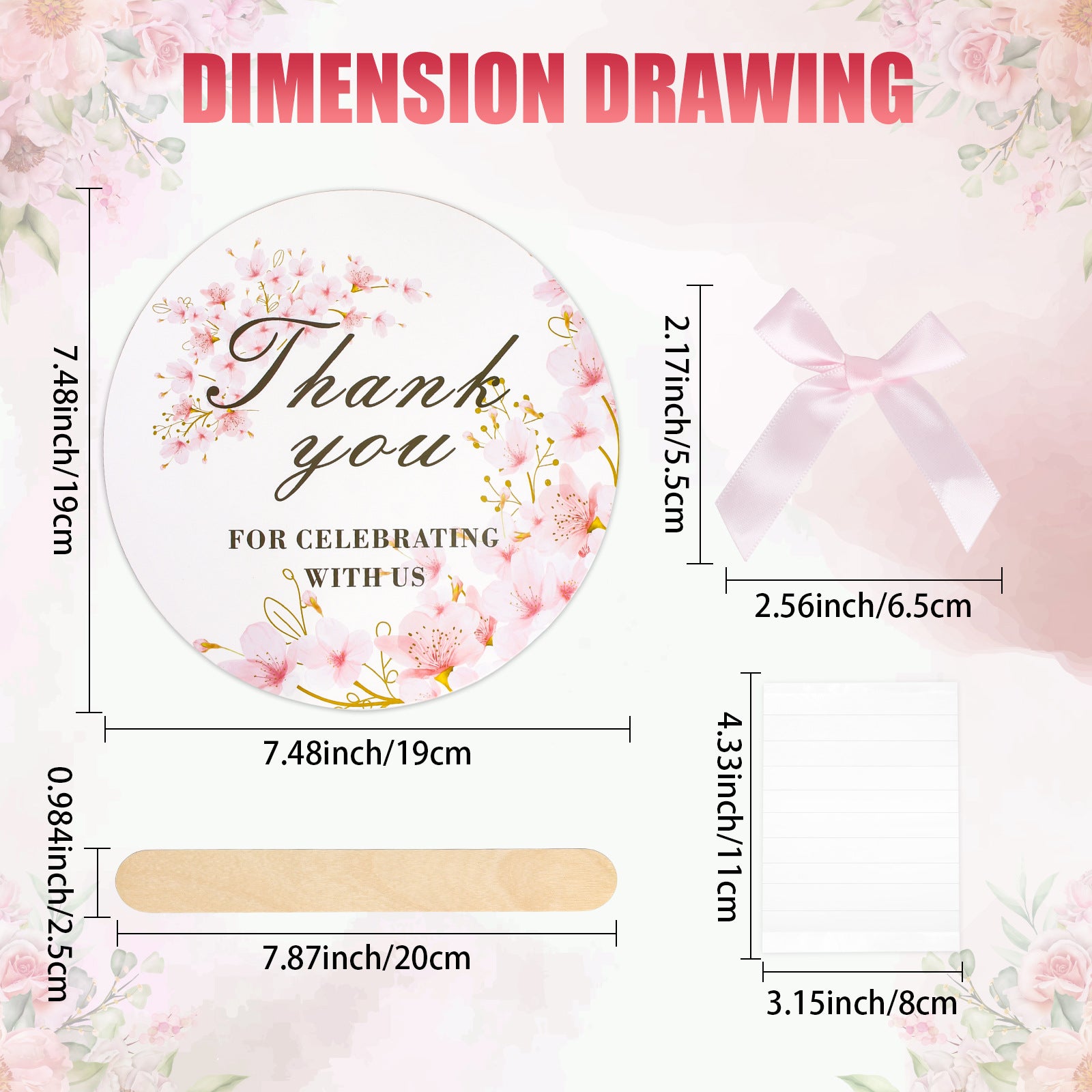 • Size: 7.5 inches (the perfect handheld size for guests!)