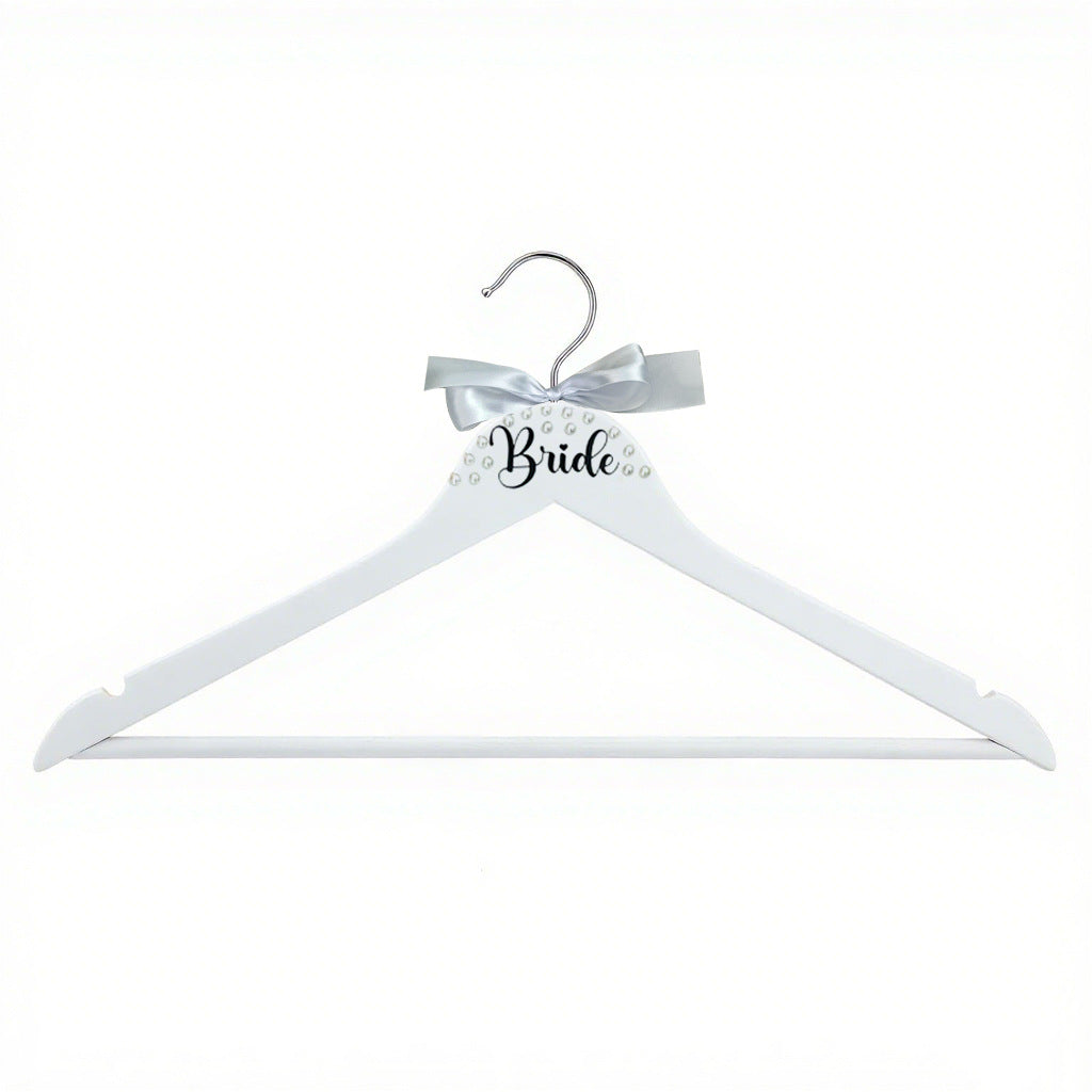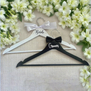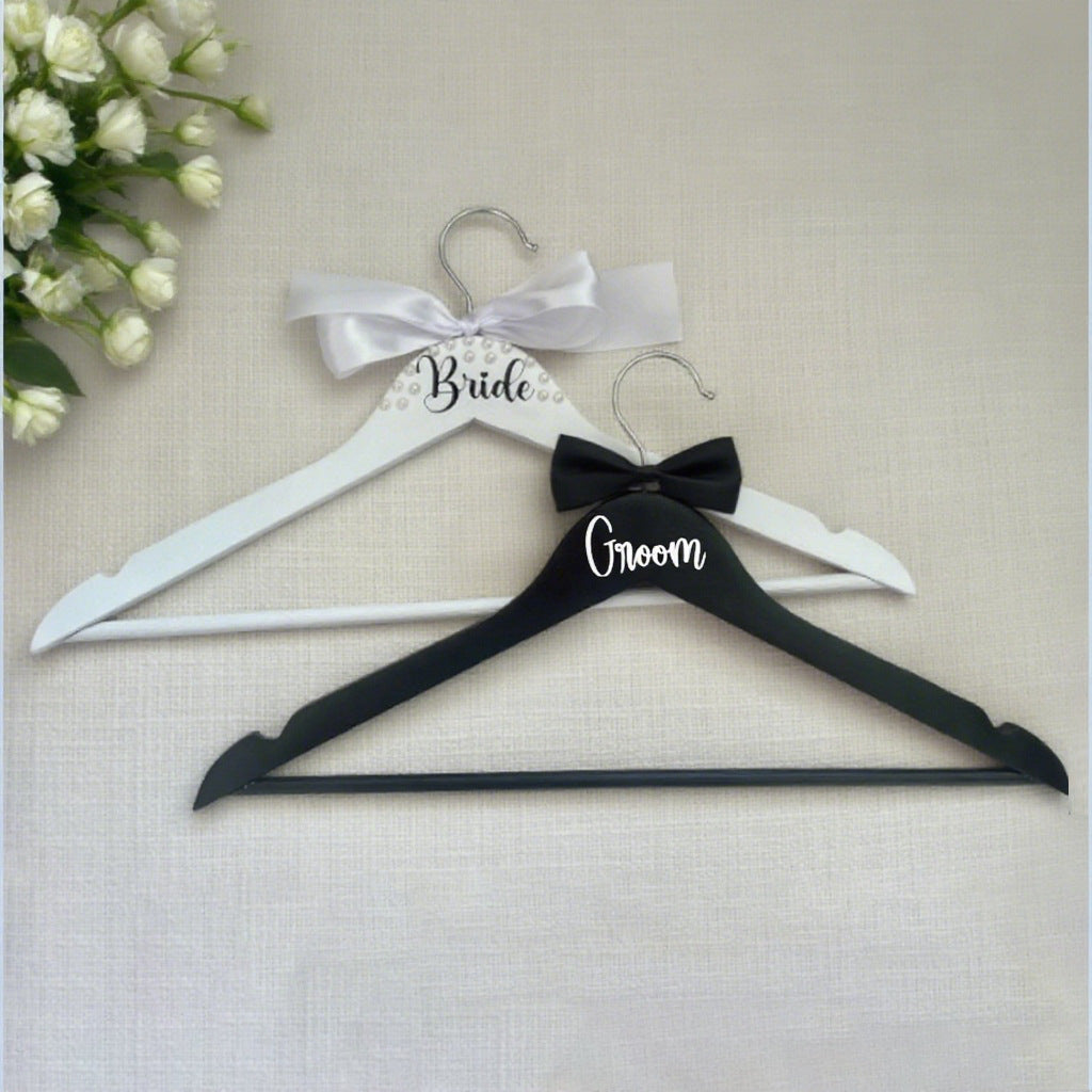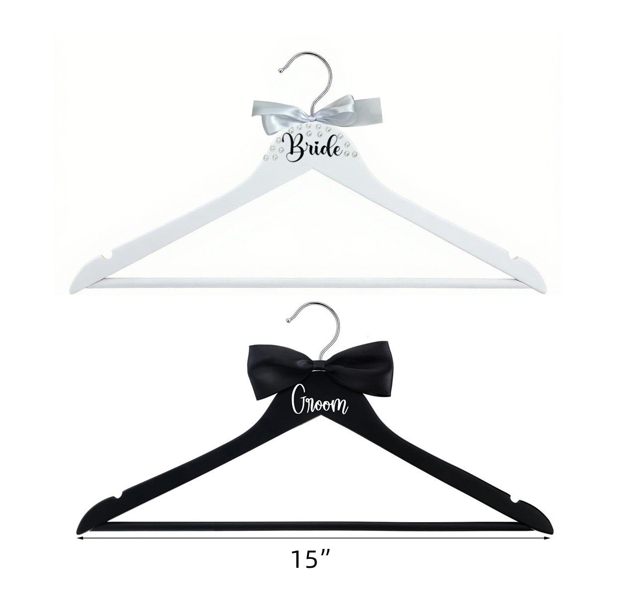 Bride & Groom Wedding Hanger Set - 2 Pack with Pearl Bow & Crossbar | 15x8.7 Inch