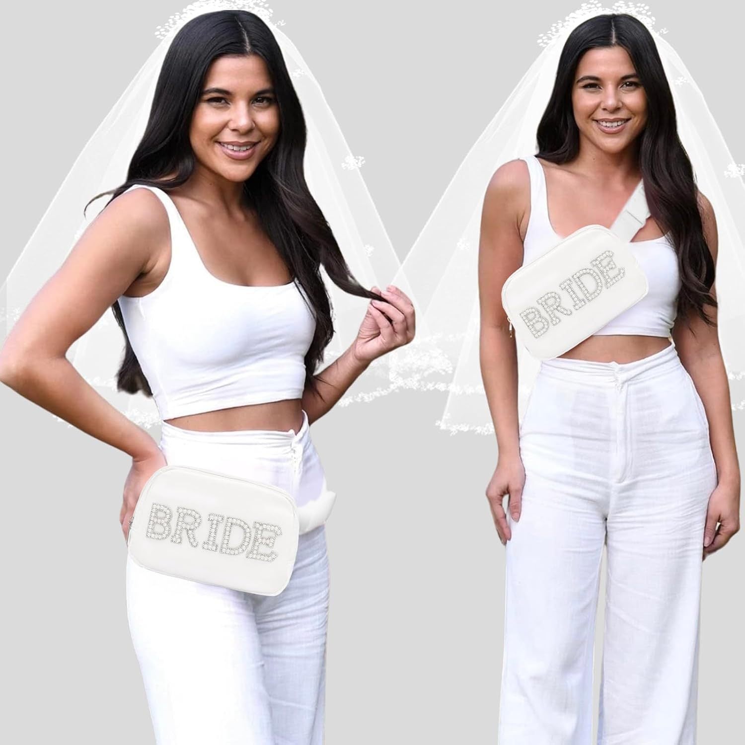 Bride Pearl Letter Fanny Pack Chest Bag - Waterproof Nylon | 8.3x5.7 Inch Wedding Accessory