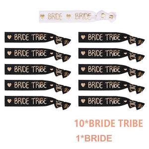 Bride Tribe Wristbands Set, 11PCS Team Bride & Bride Elastic Bracelets for Bachelorette & Wedding Parties