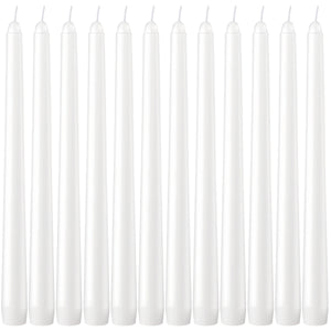 Bulk 10 Inch Set of 12 White Unscented and Smokeless Taper Candles for Parties Celebrations and Birthday Decorations Wholesale