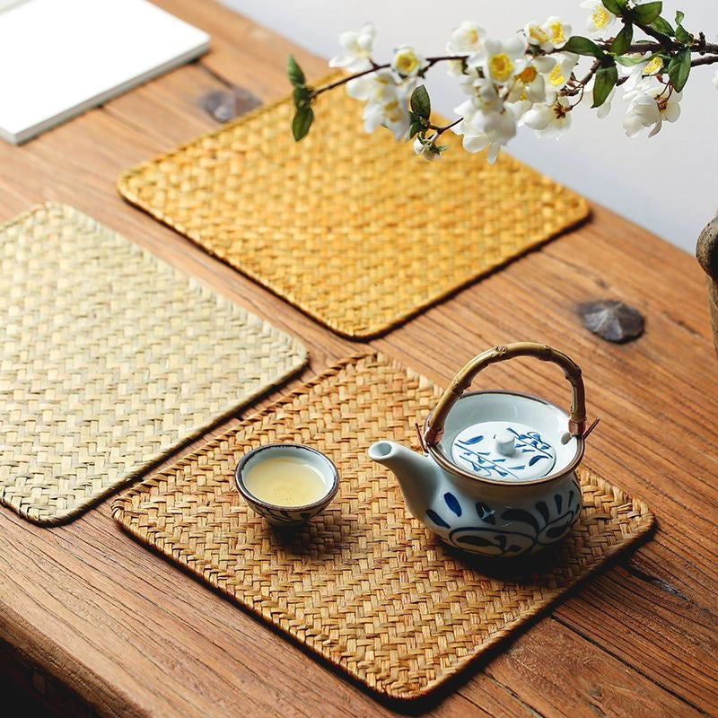 Bulk 10 Pack Handwoven Seagrass Placemats: Heat - Resistant, Creative (12.6"×8.7")