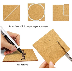 - It is made of high-quality cork material, which has natural environmental protection properties and does not contain harmful substances, ensuring safe use in the home environment. The bottom is equipped with self-adhesive primer, which has strong adhesion and is easy to stick to various smooth floors. It is easy to operate, strong and reliable. In addition, its surface material can be written on.