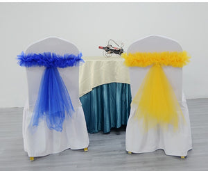 - Enhance the elegance of your event with our Elastic Chair Sashes adorned with charming butterfly bow accents. Made from durable polyester fiber, these chair sashes are designed to effortlessly elevate the ambiance of weddings, banquets, and other special occasions. Their elastic nature ensures a snug fit on chairs ranging from 32.7 to 36.7 inches in size. With a pack containing 10 pieces, these sashes offer both convenience and affordability, making them a must-have for event planners and party organizers alike.