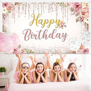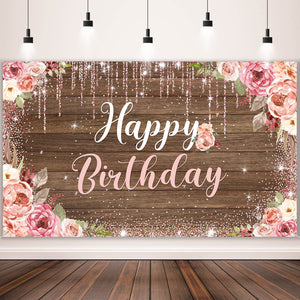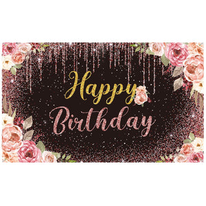 Bulk 10 Pcs Happy Birthday Backdrop Rose Glitters Banner for Wedding Bridal Engagement Shower Bachelor Birthday Anniversary Party Supplies Wholesale