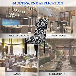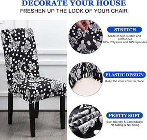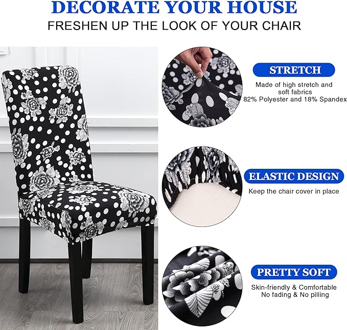 - The Dimensions Suitable for Your Chairs The elastic chair covers are suitable for regular and high-back dining and kitchen chairs. The height of the backrest ranges from 18 to 23 inches, with a width of 14 to 18 inches, and a thickness of the backrest not exceeding 3 inches. The seat width and length are between 14 and 18 inches, with a seat thickness of 1 to 4 inches. Please measure your chairs before ordering to ensure the best fit.