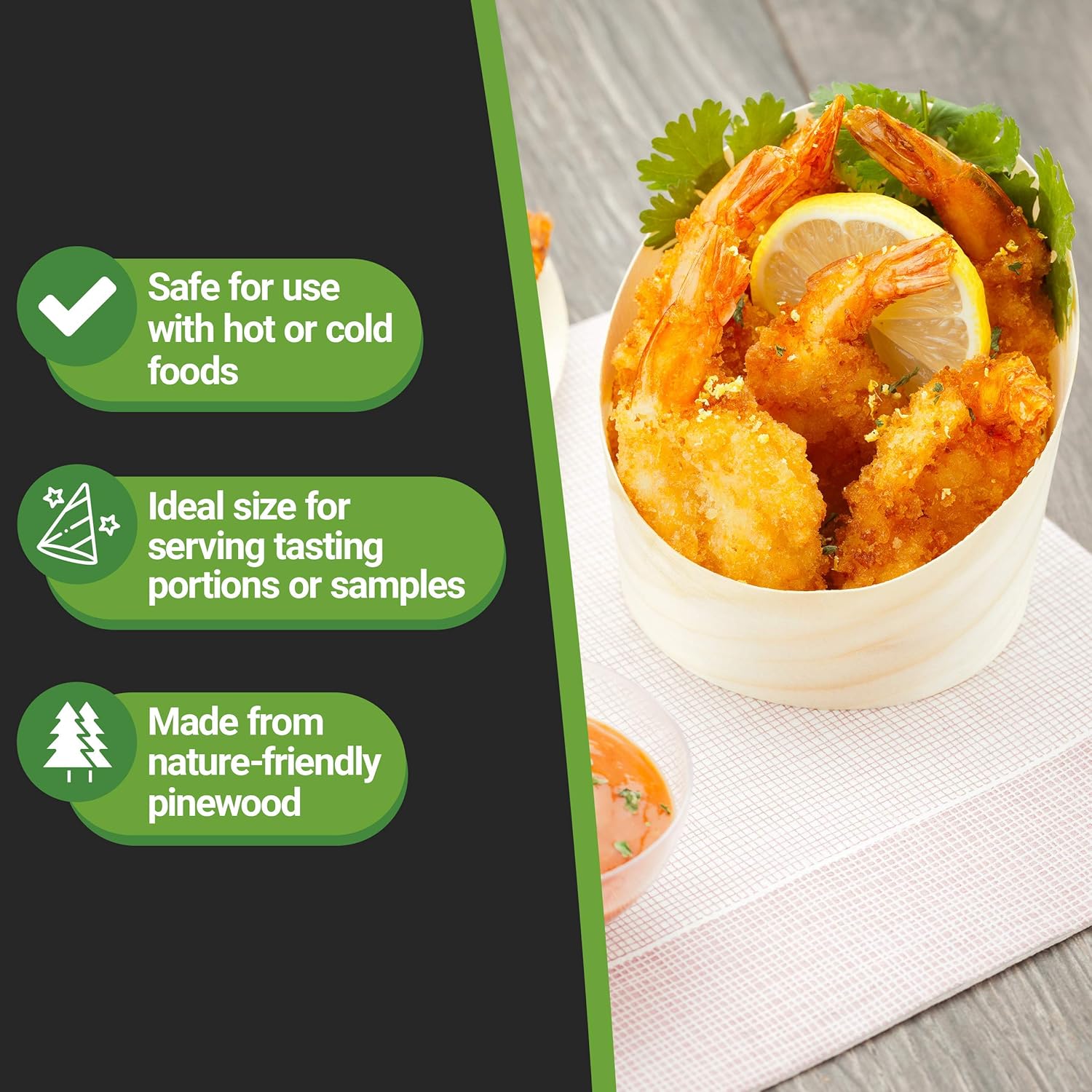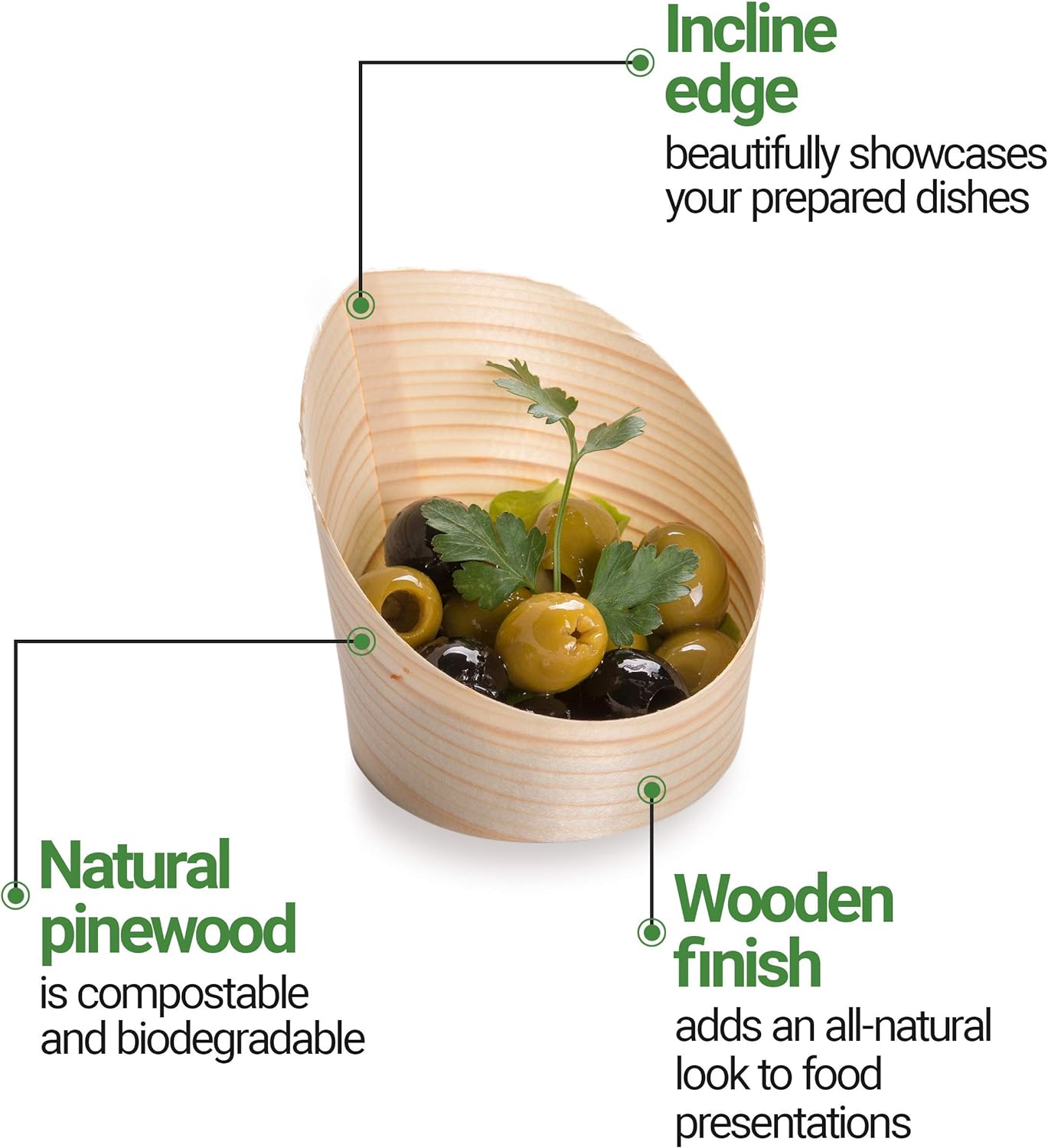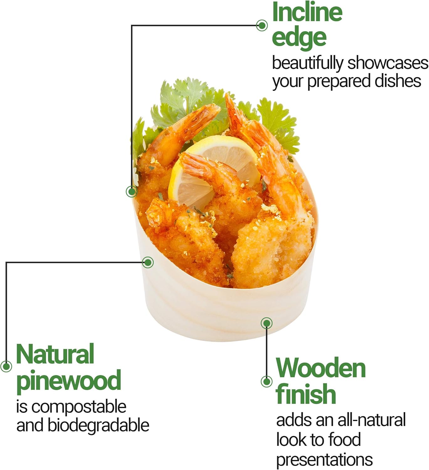 - Innovative Sustainable Design: Present your dishes with style and sustainability! These 4-ounce round neutral wood mini slanted cups are durable and reliable in busy catering environments.