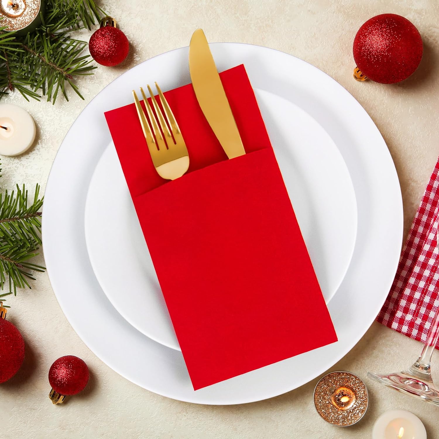 - WITH VERSATILE POCKET:Silverware fits easily into the pre-folded pocket to ensure your utensils remain sanitary and stationary on each table until they're needed. These elegant pocket airlaid napkins are easily prepare table settings and perfect for everyday.You can also put menu, invitation cards and silverware