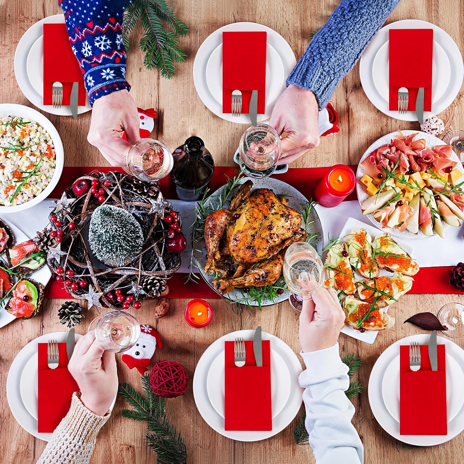 Bulk 100 Pcs 16.5" x 16.5" Premium Dinner Napkins with Flatware Pocket Soft Absorbent Cloth for Kitchen Parties Weddings Events Wholesale