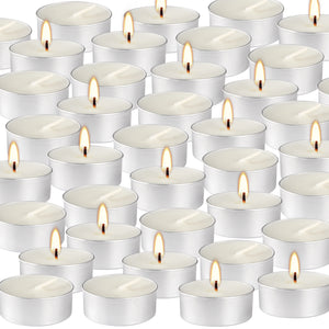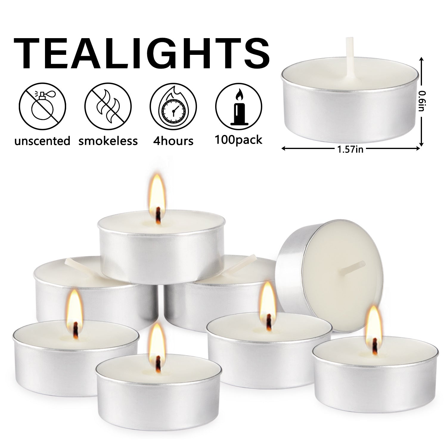 Bulk 100 Pcs Unscented Smokeless White Tea Light Candles with 4-Hour Burn Time for Home Decor Shabbat Weddings Events Birthday Parties Wholesale