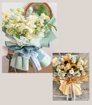 - The high-quality material is waterproofed to protect the bouquet from moisture. The thick and tough wrapping paper provides good support for the bouquet and protects the flowers from damage.