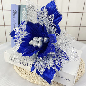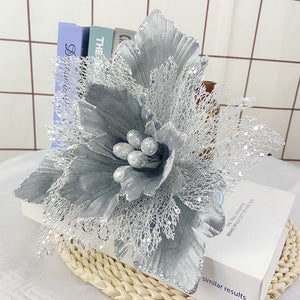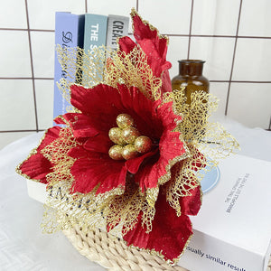 Bulk 11.8" Large Christmas Poinsettias Heads Artificial Christmas Flowers Glitter Flowers Mall Prop Wholesale