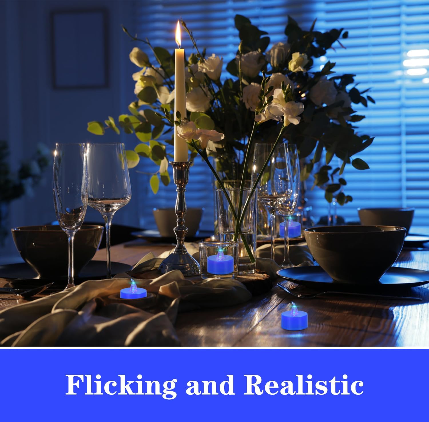Realistic Flicker - LED Tea Lights feature a lifelike appearance and flicker with warm light, creating a romantic and cozy atmosphere.