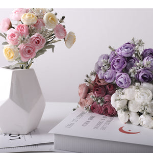 12.6 Inches Artificial Flower Bouquet: Rose, Dahlia & Chamomile Mix