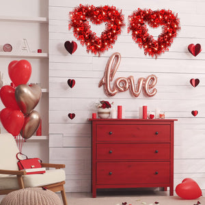 Bulk 12" Heart Shaped Valentine’s Day Wreath with LED Lights for Home Party Decor Wholesale
