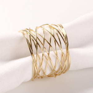Bulk 12 Pcs Golden Round Mesh Napkin Rings for Dinner Table Weddings Parties and Everyday Decor Wholesale