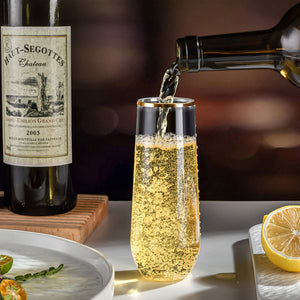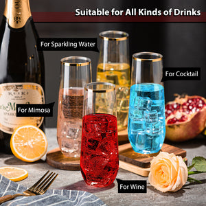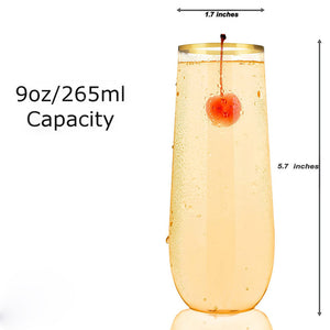 Bulk 12 Pcs Stemless Plastic Champagne Flutes 9 oz Disposable Gold Rim Toasting Glasses Shatterproof for Weddings Parties & Birthdays Wholesale