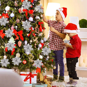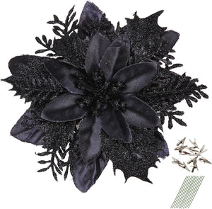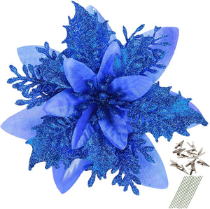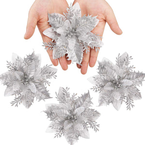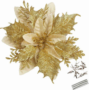 Bulk 12Pcs 5.5" Glitter Poinsettia Artificial Flowers with Clips for Christmas Tree Ornaments Wedding Party DIY Wreath Decor Wholesale
